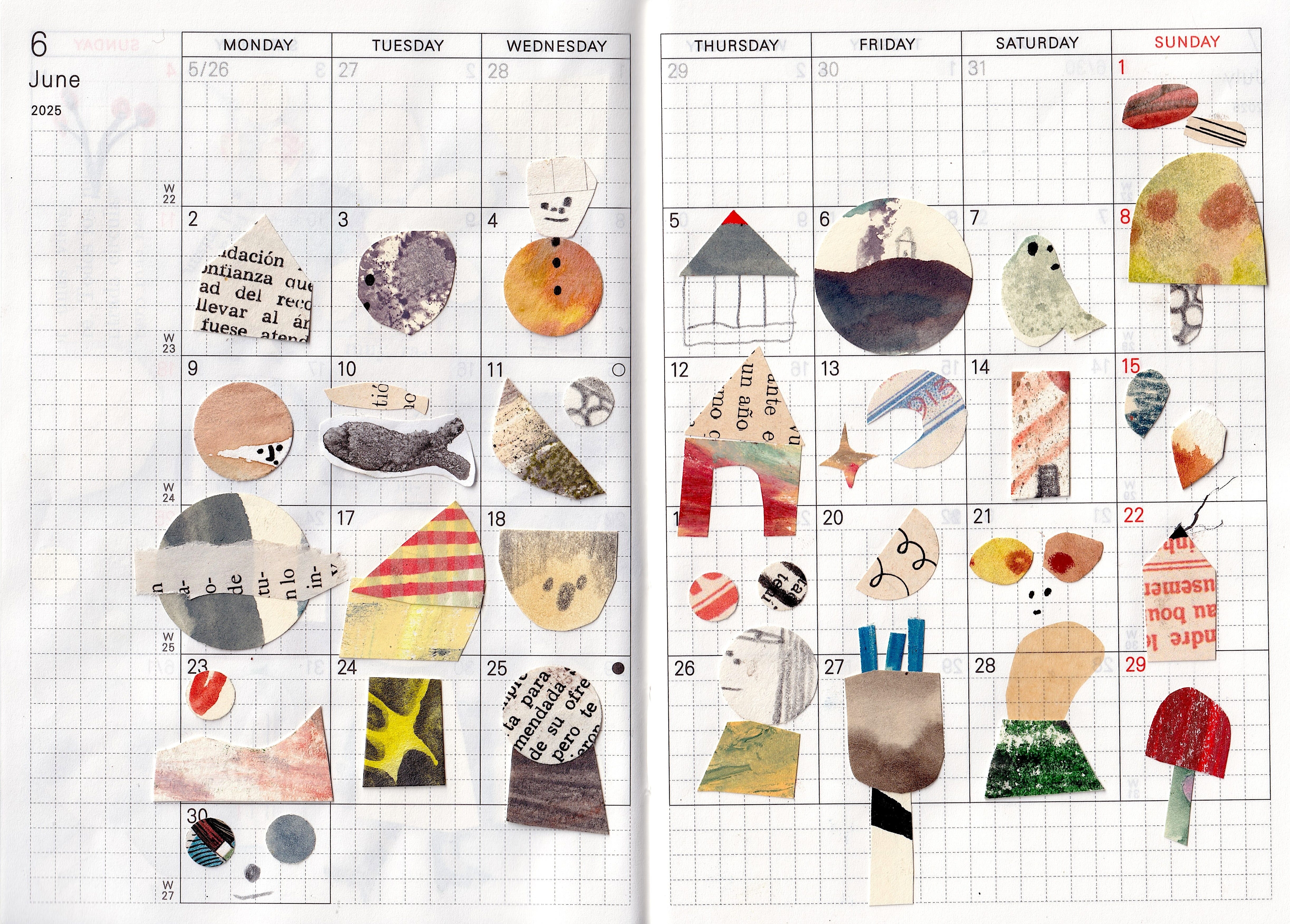 And Collage. This month I played a lot with textures and scraps and shapes, in preparation for the class I led on July 1st.